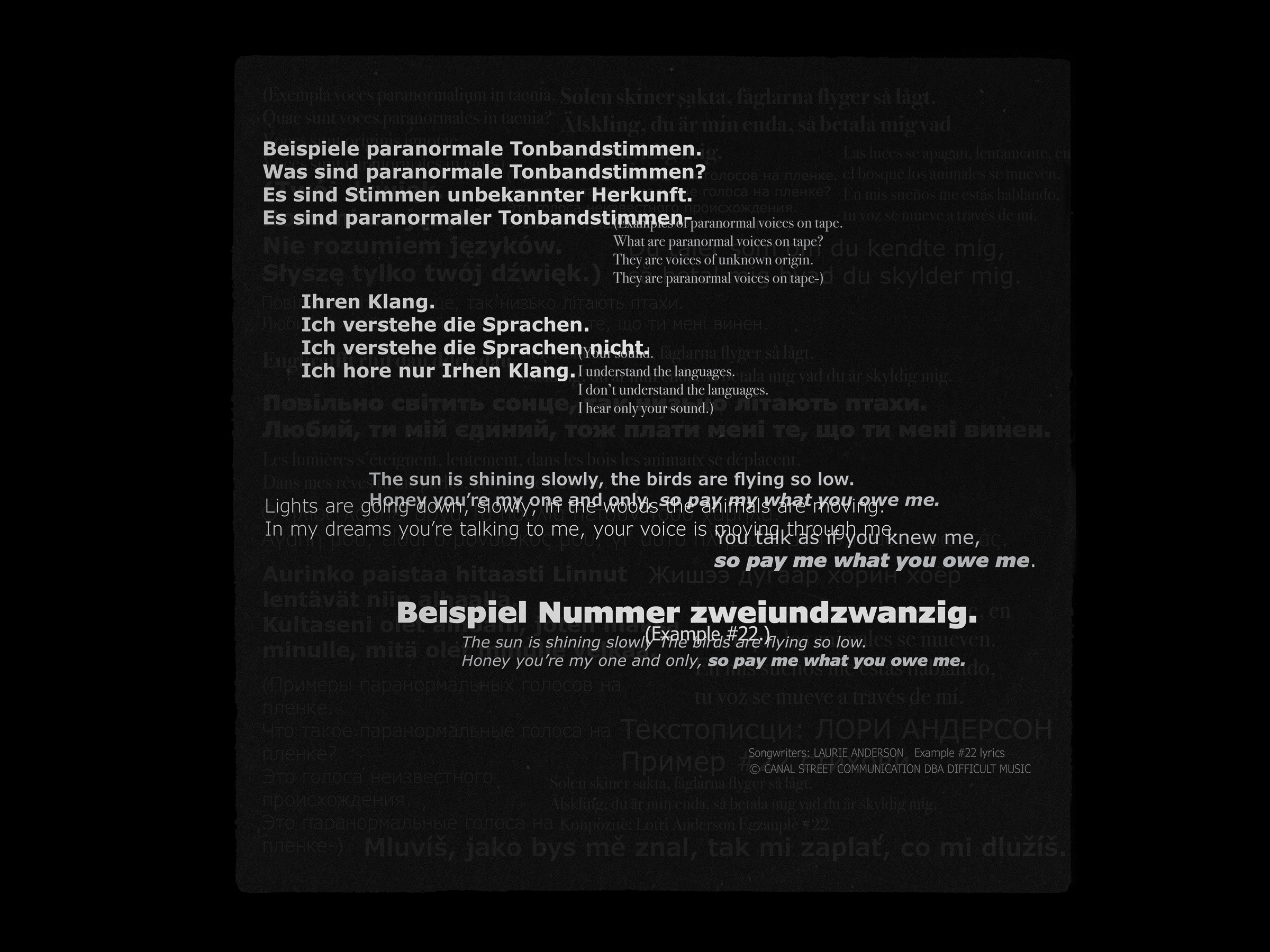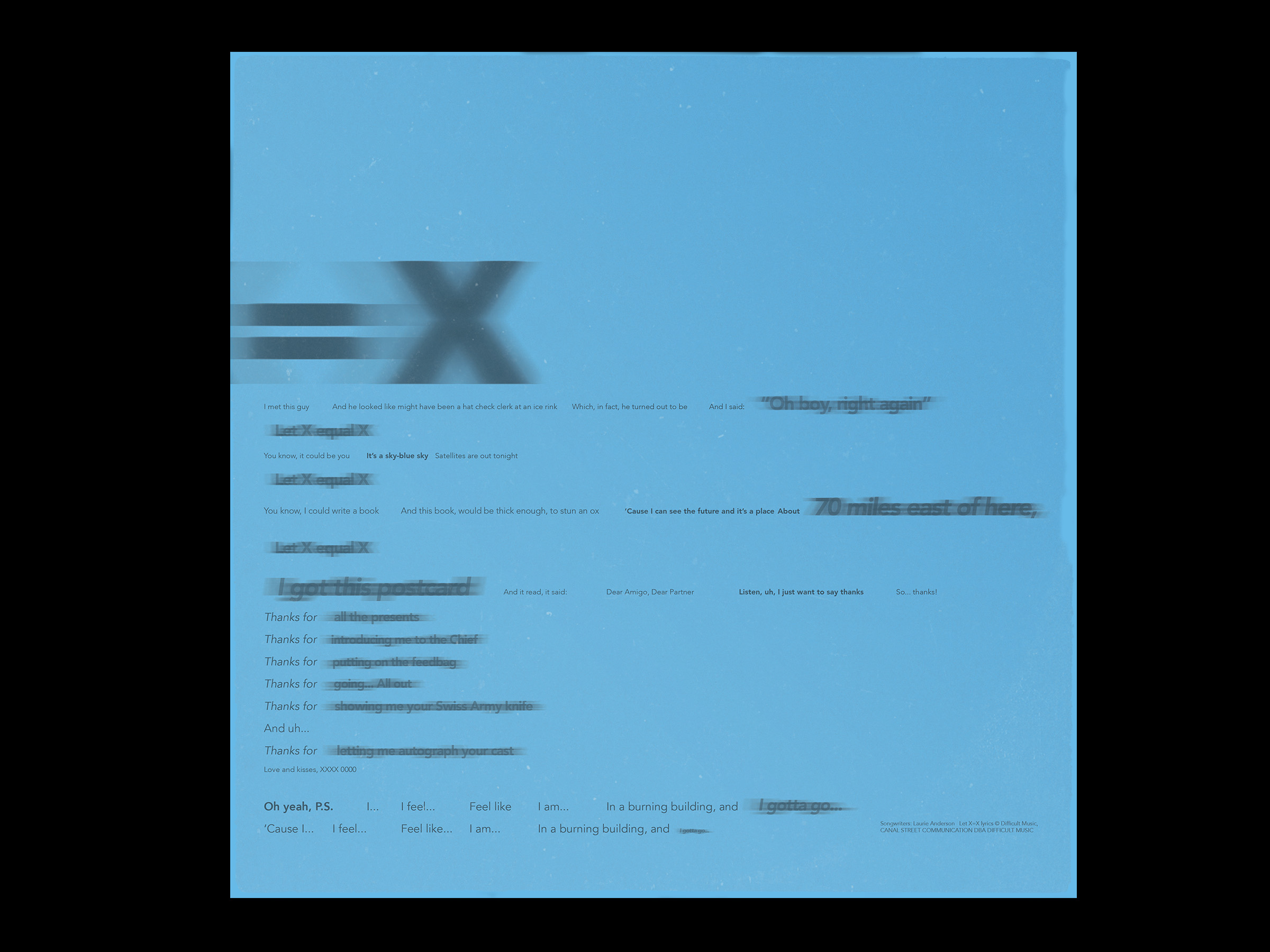 Out of a list of 3 sources of text, I chose to use selected lyrics from Laurie Anderson's 1982 album, Big Science.